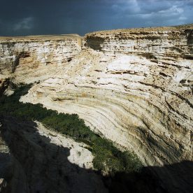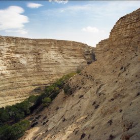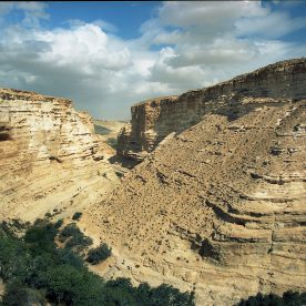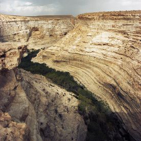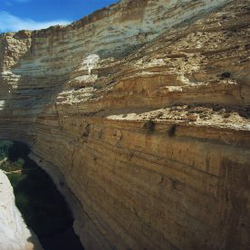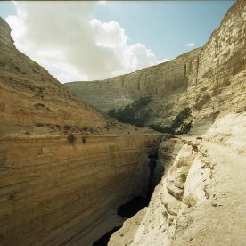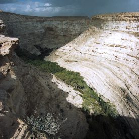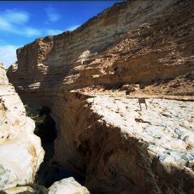 Canyon in the Negev Desert of Israel, south of Kibbutz Sde Boker. Archaeological evidence shows that Ein Avdat was inhabited by Nabateans and Catholic monks. Numerous springs at the southern opening of the canyon empty into deep pools in a series of waterfalls.Credit to Natasha and Lenya Oster, who hosted the venture.