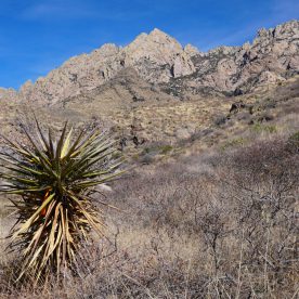 The Organ Mountains are a steep, angular mountain range with rocky spires that jut majestically above the Chihuahuan Desert floor to an elevation of 9,000 feet. This picturesque area of rocky peaks, narrow canyons, and open woodlands ranges from Chihuahuan Desert habitat to ponderosa pine in the highest elevations. Located adjacent to and on the east side of Las Cruces, this area provides opportunities for photography, hiking, horseback riding, mountain biking, camping, and wildlife viewing.