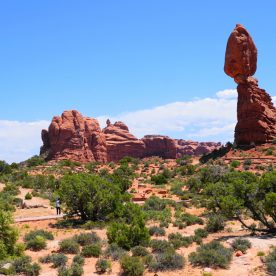 At sunset, Balanced Rock becomes saturated in a deep red-orange making it a great place to end a fun-filled day in the park. This is also an ideal place for stargazing and night photography. Its location is just far enough from the city lights of Moab, Utah and provides whimsical rocky spires in the foreground.