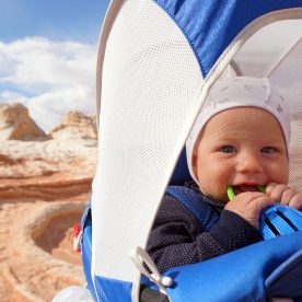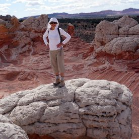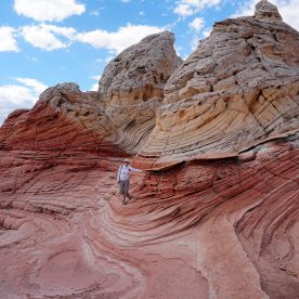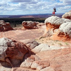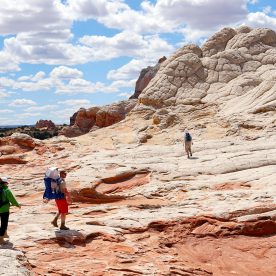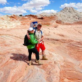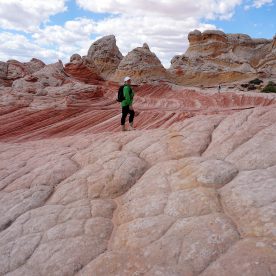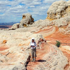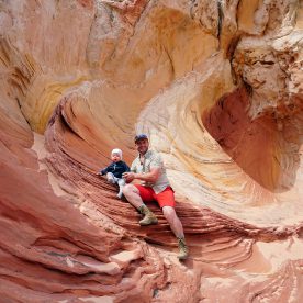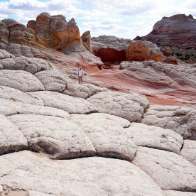 Everyone was warning that to get to White Pocket area is quite a challenge- off-road vehicles with high clearance “a must”, some off road driving experience “a must” , and so on-long list of “musts”. We took a challenge in our truck with a baby on the back seat- 91 miles total-70miles highway- 10 miles of washboard road truck was “dancing” no matter how careful driver was, then wheels were deflated down to almost nothing and that helped us to navigate 11 more miles on wheels deep sand and stones narrow road. We ended up in a place which was alien land, Martian maybe, or other planet we never saw before! It’s not that big, but totally, totally worth all the trouble of driving.
