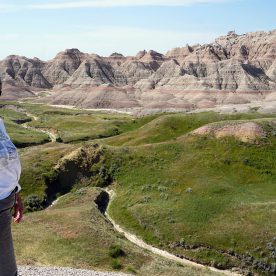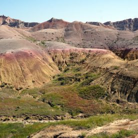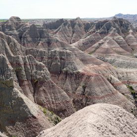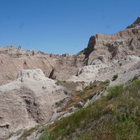 Badlands National Park is in South Dakota. Its dramatic landscapes span layered rock formations, steep canyons and towering spires. Bison, bighorn sheep and prairie dogs inhabit its sprawling grasslands. Grey Is the major color here in stark contrast with bright green of the grass. This land has been so ruthlessly ravaged by wind and water that it has become sooo picturesque. We are driving back to Utah on the nothern way from Philly.