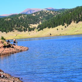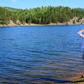 It doesn’t matter how long one stays at the same spot- as long as one has desire and time to look around and explore. We walked through the streets of Cripple Creek, even picked into the one of the zillion casinos there (looks sad, but the beer is very cheap), went to see show at the local opera house again, biked through the area (were kind of huffing and puffing due the altitude), went fishing to Skaguay lake(got some trouts). There are multiple, multiple lakes everywhere- mostly manmade, but all of them very, very picturesque. We stopped by The Florissant Fossil Beds National Monument “where the highlight is a group of petrified sequoia stumps, the largest 41 feet in circumference – all still upright and in their original positions, part of a pretty, pastel-colored landscape of yellow-green grassy plains bordered by low wooded hills. The sequoia (or redwood) stumps are the most visible and spectacular relics in the national monument, although the main discoveries in this area were many thousands of smaller fossils – plants, insects, fish, birds and mammals – which have been excavated from the thin-layered sedimentary rocks beneath the hillsides since the late 1800s when the significance of the location was first recognized”, and huge part of fossils was lost due to uncontrollable looting by the visitors until that area was turned into National Monument.