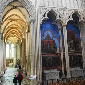 Monet’s famous depictions of Rouen Cathedral have made this vast edifice many visitors’ favourite building in the city, but there are also many fine museums to explore, not to mention the Gros Horloge clock tower, France’s oldest inn La Couronne and the beautiful modern church dedicated to Joan of Arc.English medieval history is closely linked to Rouen. The Anglo-French kings kept a deep affection for the city. William the Conqueror often held court here. Richard the Lionheart was crowned Duke of Normandy in the city, and literally left his heart there… as would Joan of Arc, much against her will, when, in the second half of the Hundred Years’ War, English forces occupied much of northern France, including Normandy and its capital. After Joan had inspired a lightning series of successes against the English army south along the Loire, she was captured by Burgundians and ransomed off at vast price to the English. Joan was tried by French churchmen in English-ruled Rouen in 1431, ending up on the funeral pyre here in 1431. A museum in honour of Joan of Arc d’Arc, Historial Jeanne d’Arc, housed in the Archbishop’s Palace next to the cathedral.
