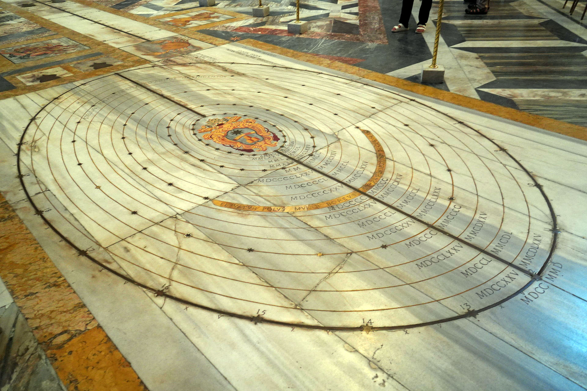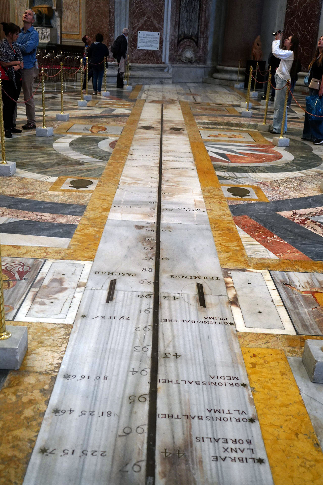 Construction: It is a 45-meter-long meridian line on the floor of the basilica, with a pinhole aperture located high up in a window.