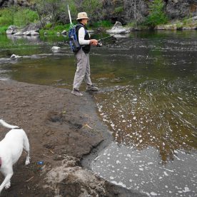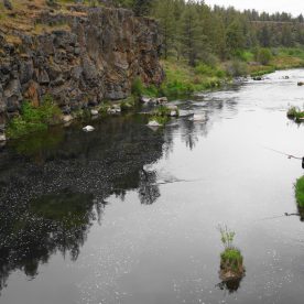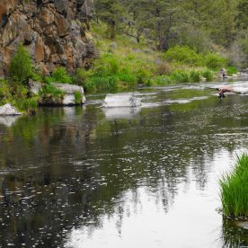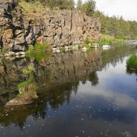 Crane Prairie Reservoir, the first major lake/reservoir the Deschutes flows into, offers some of the best rainbow trout fishing in Oregon, with a large number of rainbows in the 4-10 pound range and some reaching 20 pounds. These trout are renowned for their size and are given the nickname “cranebows”. Other fish found in Crane Prairie are brook trout, kokanee salmon, largemouth bass, black crappie, tui chub, three-spined stickleback, and whitefish. Fly, lure, and bait fishing are popular methods, with the majority of trout fisherman casting or trolling in the channels. For the best chance of catching large fish, a boat or other flotation device is recommended as the channels can be wide and deep.