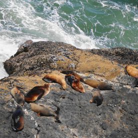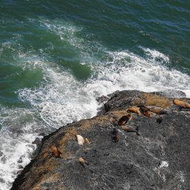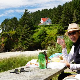 Heceta Head Light and Keepers Quarters was placed on the National Register of Historic Places in 1978 for its architectural and engineering significance. The site originally included several other buildings — farm buildings and the single-family head lighthouse keeper’s house, which was demolished in 1940, and was very similar in size and design to the remaining house. Due to electrification, the head lighthouse keeper was no longer needed, and the house was bought for $10 and dismantled for its lumber, which was used to build Alpha Bit bookstore-cafe in Mapleton, still standing today. The remaining keepers’ house was a duplex that housed the first and second assistant lighthouse keepers and their families. After the light was automated in 1963, the last keepers moved away, and the remaining house was leased to Lane Community College in 1970 by the U.S. Forest Service, which had taken over management of the building. The porch of the Queen Anne-style house underwent restoration in 1981.