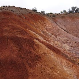 The Hills’ colors originate from 35 million years ago, when this area was an ancient river floodplain. The colored bands are due to changes in climate that occurred as they were distributed through time. As the climate changed to a more tropical setting with distinct wet and dry seasons produced the reddish and yellowish layers that are made up of laterites, soils rich in iron and aluminum. Red soils come from a more tropical period, while the yellows are from a drier and cooler time. The red coloring is laterite soil that formed by floodplain deposits when the area was warm and humid. The darker, black soil is lignite that was vegetative matter that grew along the floodplain. The grey coloring is sandstone, silt-stone, and shale.