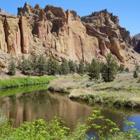 The namesake feature of the modern state park is Smith Rock, a 3,200-foot elevation ridge and 600-foot-tall cliff overlooking a major bend of the Crooked River. The park, which attracts approximately 747,000 visitors annually, has become an iconic image of central Oregon and the Oregon state park system. Visitors participate in an array of activities, including rock climbing, hiking, trail running, camping, horseback riding, mountain biking, wildlife viewing, and photography. The American Alpine Institute has singled out Smith Rock State Park as “famous for sport climbing” in America, and the park attracts climbers from all over the world who challenge themselves on more than 2,000 climbing routes of all degrees of difficulty.