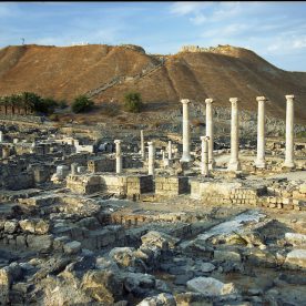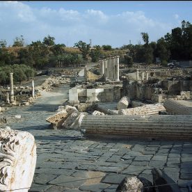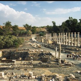Beit She’an, Israel, 2010Beit She’an (Hebrew: בֵּית שְׁאָן About this soundBeth Šəān, also known as Beisan and historically known as Scythopolis is a city in the Northern District of Israel, which has played an important role in history due to its geographical location at the junction of the Jordan River Valley and the Jezreel Valley. In the Biblical account of the battle of the Israelites against the Philistines on Mount Gilboa, the bodies of King Saul and three of his sons were hung on the walls of Beit She’an. In Roman times, Beit She’an was the leading city of the Decapolis, a league of pagan cities. In modern times, Beit She’an serves as a regional centre for the settlements in the Beit She’an Valley.