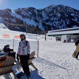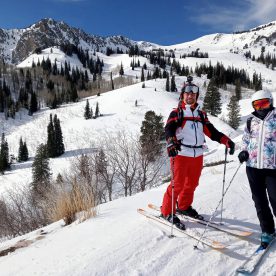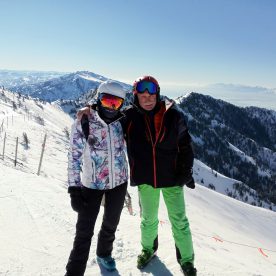 On Thursday we visited one of the oldest ski resorts in the United States- Snowbasin Ski Resort. It appears that resort takes care about everything they can control- amazing variety of well groomed and not-groomed trails; speedy lifts; smiley, welcoming lifts and lodge workers; luxury day lodges with shiny, huge gold light fixtures; beautiful carpets( which make you feel guilty that you walk on them in ski boots); glamorous, huge fireplaces and much more. Just to impress us- nature took care about everything else-sun was shining, snow was soft (ice? What ice?), astonishing scenery was all around us. What else needed for the three of us to be free and happy!