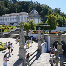 Bom Jesus do Monte is a Portuguese sanctuary located around the city of Braga , in the north of the country His name means ‘Good Jesus of the Mount’. The Shrine is a remarkable example of a pilgrimage site . Its most prominent feature is its baroque monumental stairs , which save an unevenness of 116 meters. It is an important tourist attraction of the city of Braga.