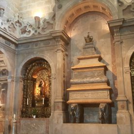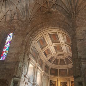 The cloisters are magnificent, with each column differently carved with coils of rope, sea monsters, coral, and other sea motifs, evocative of that time of world exploration at sea. Here is also the entrance to the former refectory that has beautiful reticulated vaulting and tile decoration on the walls, depicting the Biblical story of Joseph.