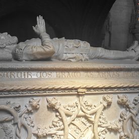 Vasco da Gama’s tomb was placed inside by the entrance, as was the tomb of poet Luis de Camões, author of the epic The Lusiads in which he glorifies the triumphs of Da Gama and his compatriots. Other great figures in Portuguese history are also entombed here, like King Manuel and King Sebastião, and poets Fernando Pessoa and Alexandre Herculano.
