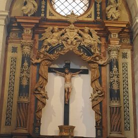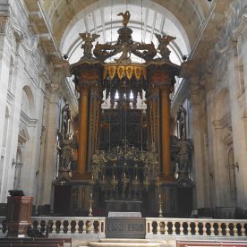 The beautiful main altarpiece is a Baroque work of the 18th century by one of the best Portuguese sculptors, Joaquim Machado de Castro. The altarpiece has the shape of a baldachin and is decorated with a large number of statues. The church also boasts several fine altarpieces in the lateral chapels.