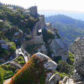 The Castelo dos Mouros (The Moors Castle) is a ruinous castle that is set amidst the lush forests of the Serra De Sintra and is a popular tourist attraction of Sintra. The Castelo dos Mouros was established during the 9th century by the North African Moors to guard the town of Sintra, but it fell into disrepair after the Christian conquest of Portugal.