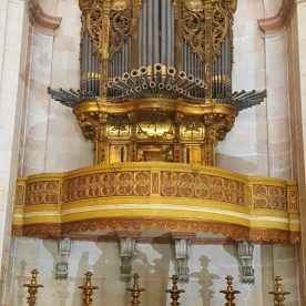 The harmonious interior of the church is dominated by the curved spaces of the central crossing and naves. The floor and walls are decorated with baroque, polychromed patterns of marble. The magnificent 18th-century baroque organ was brought from Lisbon Cathedral.