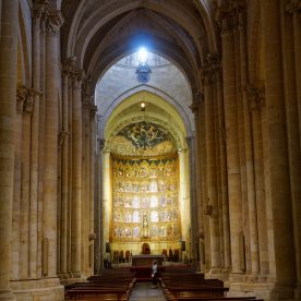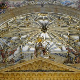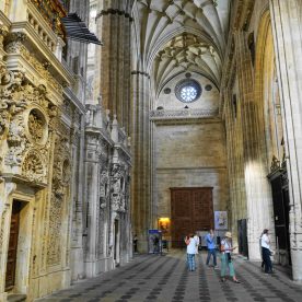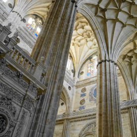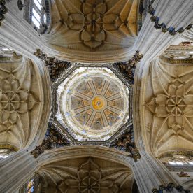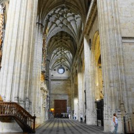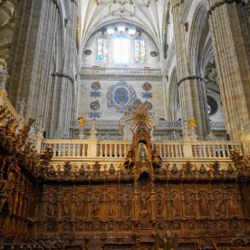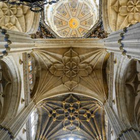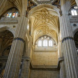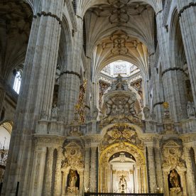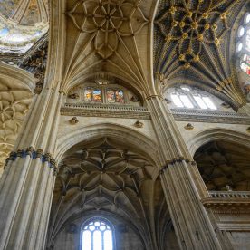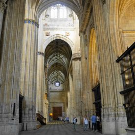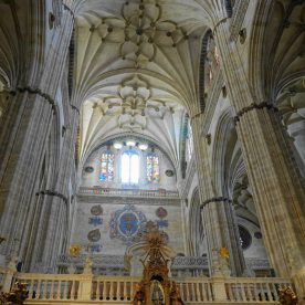 The New Cathedral (Spanish: Catedral Nueva) is, together with the Old Cathedral, one of the two cathedrals of Salamanca, Spain. It was constructed between the 16th and 18th centuries in two styles: late Gothic and Baroque. Building began in 1513 and the cathedral was consecrated in 1733. It was commissioned by Ferdinand V of Castile of Spain. It was declared a national monument by royal decree in 1887