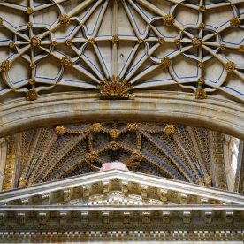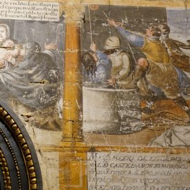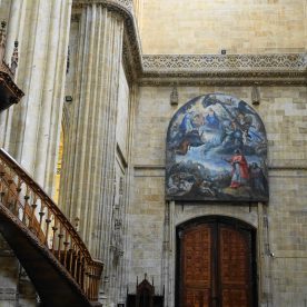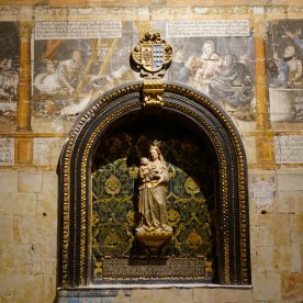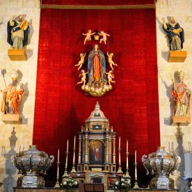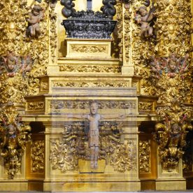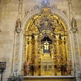 Cracks and broken windows are visible reminders of the devastating effects of the 1755 Lisbon earthquake, still visible today. After the earthquake, repairs were necessary to the cupola and the base of the tower which were reinforced with a lining of lines of sillares, in the form of a pyramid trunk that spoiled the basic profile of the tower (this tower is a virtual twin of the tower of the cathedral of Segovia). The moment of this catastrophe is commemorated with the “Mariquelo” tradition on October 31, when every year residents climb to the cupola high above and play flutes and drums.