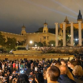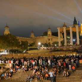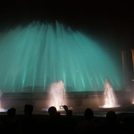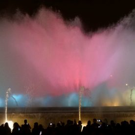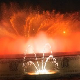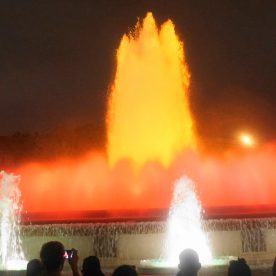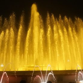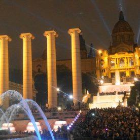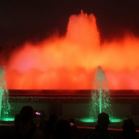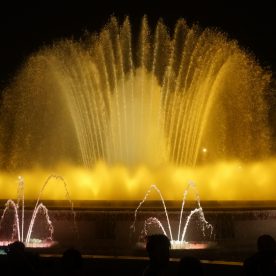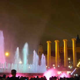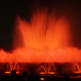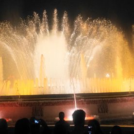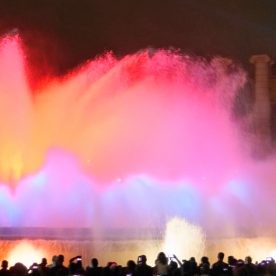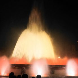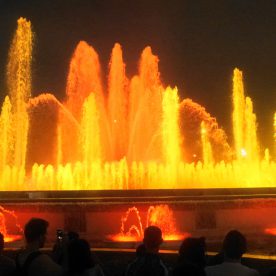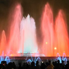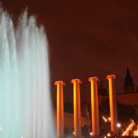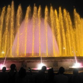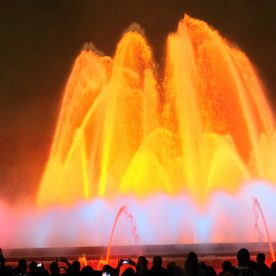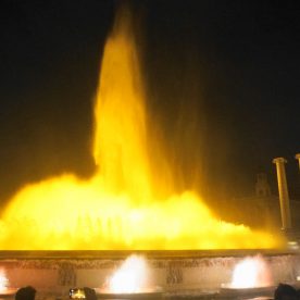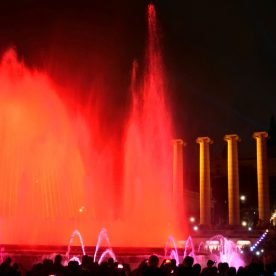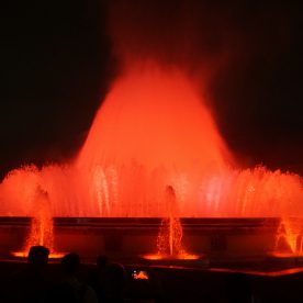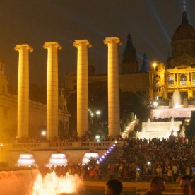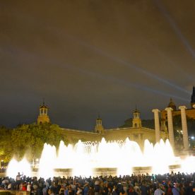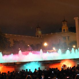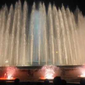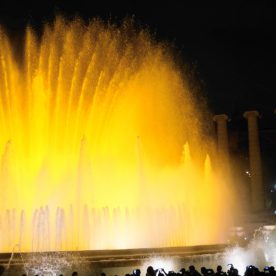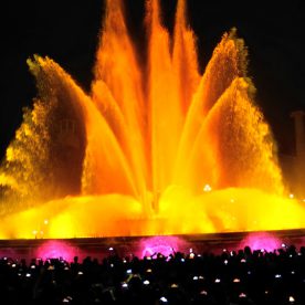The Magic Fountain of Montjuïc (Catalan: Font màgica de Montjuïc, Spanish: Fuente mágica de Montjuic) is a fountain located at the head of Avinguda Maria Cristina in the Montjuïc neighborhood of Barcelona, Catalonia, Spain. The fountain is situated below the Palau Nacional on the Montjuïc mountain and near the Plaça d’Espanya and Poble Espanyol de Barcelona. The fountain, like most of the surrounding developments, was constructed for the 1929 Barcelona International Exposition.