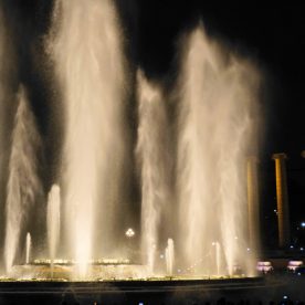 The fountain sprays 700 gallons of water a second through 3620 jets to create its effect. The highest water spout is 170 feet.
