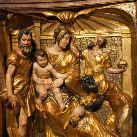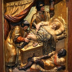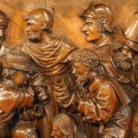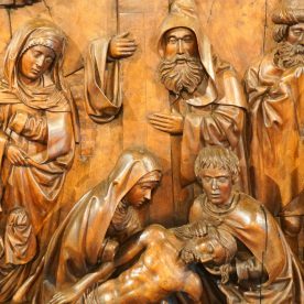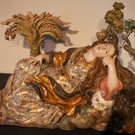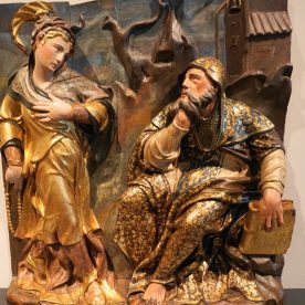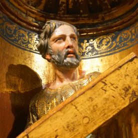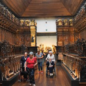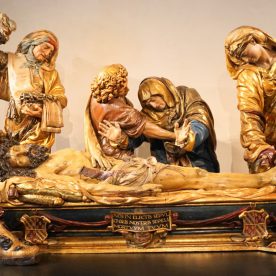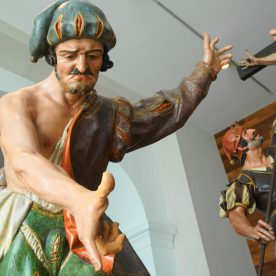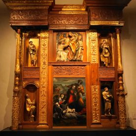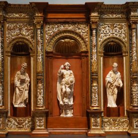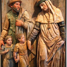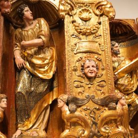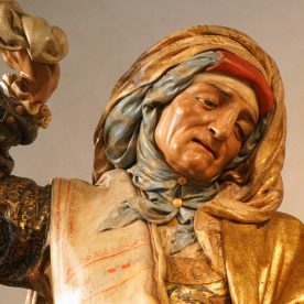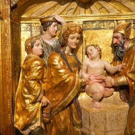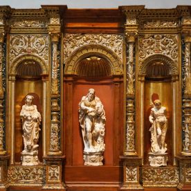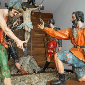 The collection is exposed in the St. Gregory College itself, a beautiful example of fifteenth century architecture, famous for the richness and originality of its decoration, as well as its importance in Spanish history. Temporary exhibitions and the Museum’s activities are conducted in the neighbouring Villena Palace which houses permanently the famous Neapolitan crib. The remodelling underwent by this splendid building and the modernization of its facilities makes it one of the best museums of its kind in Europe. The collection has a unique personality for its specialisation in polychrome wood sculpture. It contains reredoses, reliefs, stalls and procession floats, as well as a magnificent set of rafters, built between the fifteenth and eighteenth centuries. Along with the great masters such as Berruguete, Juan de Juni, Gregorio Fernández and Pedro de Mena, there are many other Spanish and foreign artists that evidence the great splendour of our history of art.