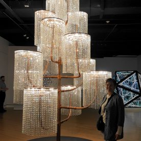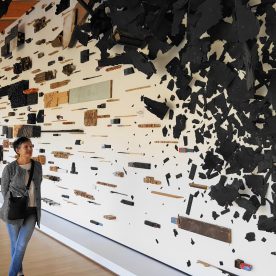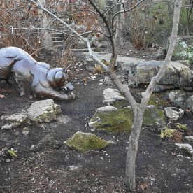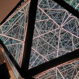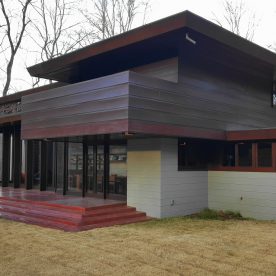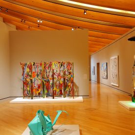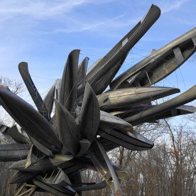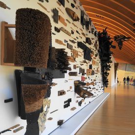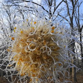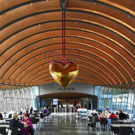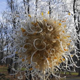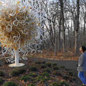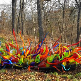 Alice Walton, the daughter of Walmart founder Sam Walton, spearheaded the Walton Family Foundation’s involvement in developing Crystal Bridges. The museum’s glass-and-wood design by architect Moshe Safdie and engineer Buro Happold features a series of pavilions nestled around two creek-fed ponds and forest trails. The soil is flinty silt loam derived from chert and cherty limestone and is mapped as Noark-Bendavis complex. The 217,000 square feet (20,200 m2) complex includes galleries, several meeting and classroom spaces, a library, a sculpture garden, a museum store designed by architect Marlon Blackwell, a restaurant and coffee bar, named Eleven after the day the museum opened, “11/11/11”. Crystal Bridges also features a gathering space that can accommodate up to 300 people. Additionally, there are outdoor areas for concerts and public events, as well as extensive nature trails. It employs approximately 300 people, and is within walking distance of downtown Bentonville.